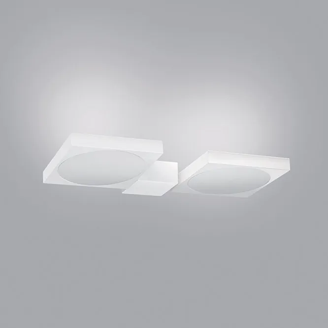 Lampada da soffitto orientabile in alluminio dalle forma quadrata.