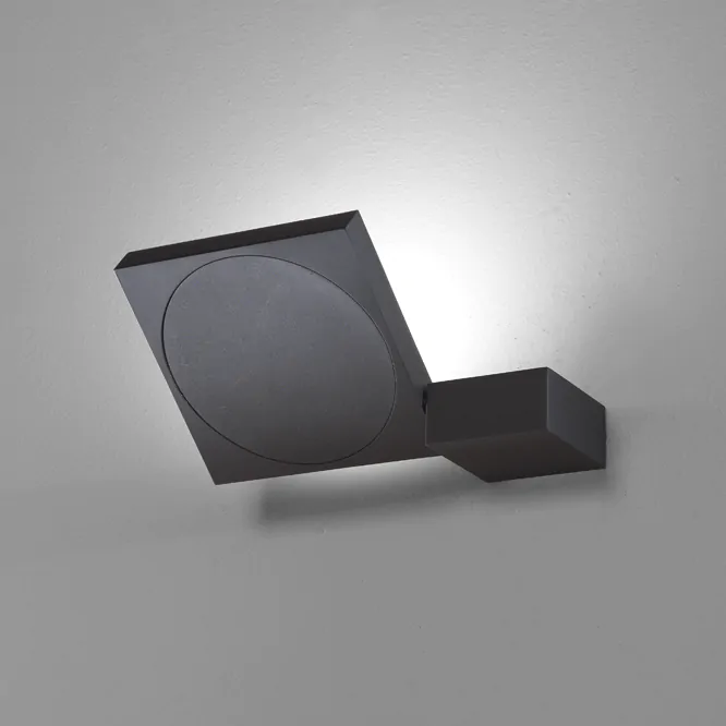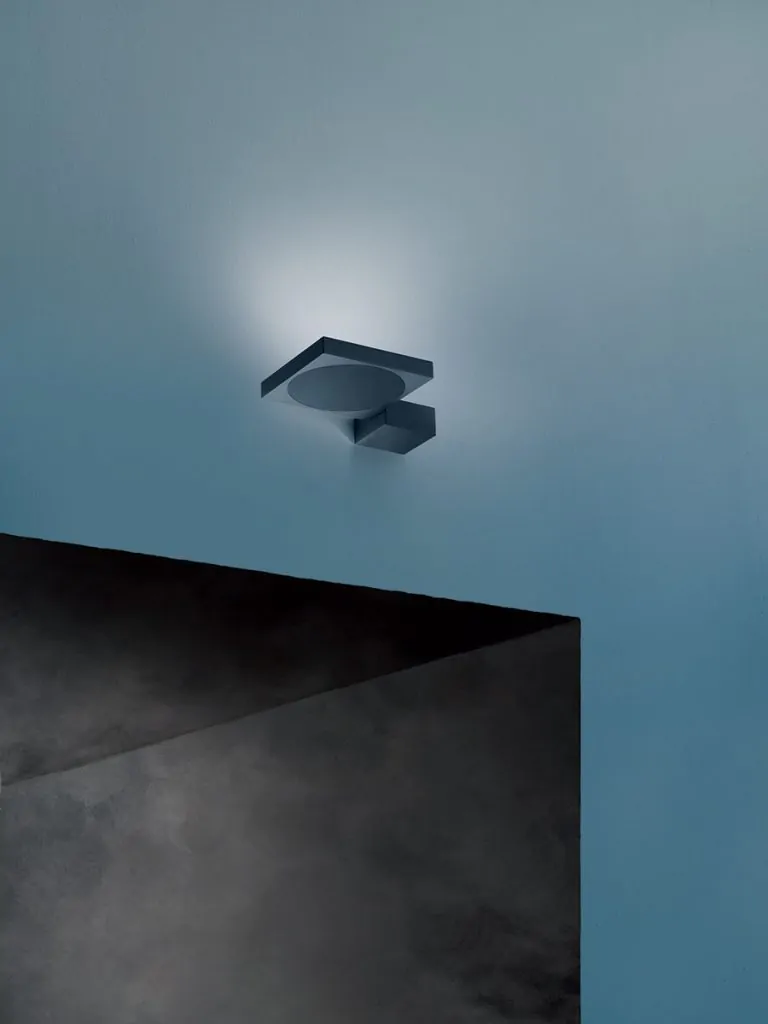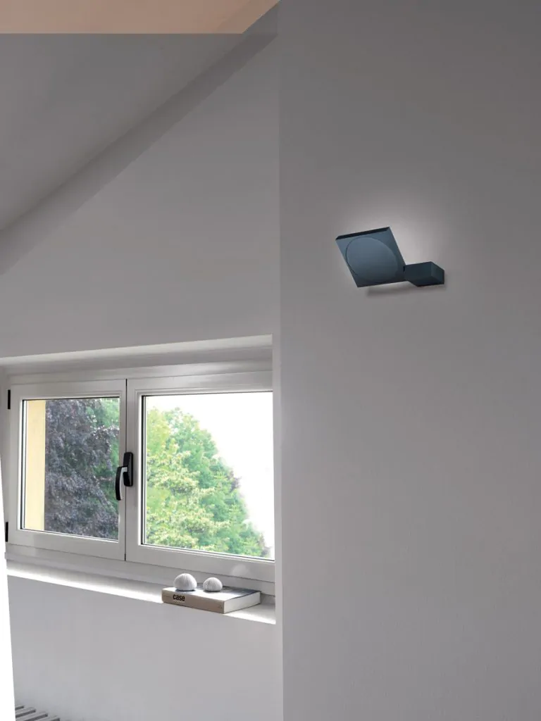 Lampada da parete orientabile in alluminio dalla forma quadrata.